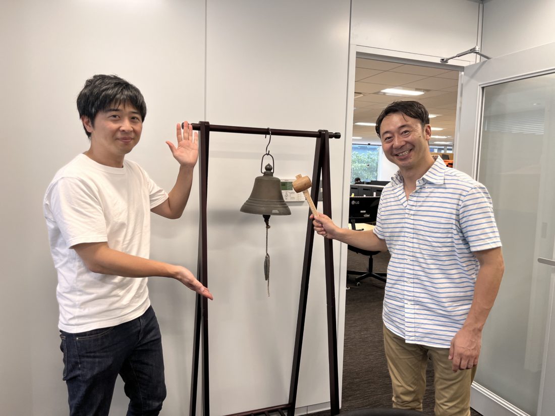 イークラウド社内にて鐘を鳴らす体験をさせていただきましたが、2028年には東証の鐘を鳴らすことを目標としてます。