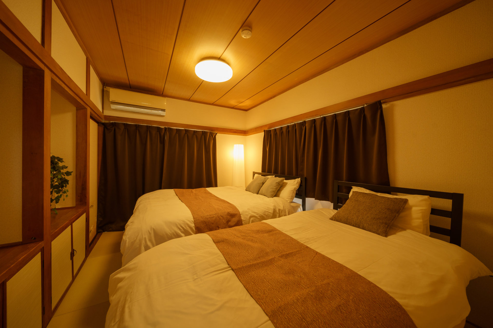 寝室は4部屋で、シングルやダブルベッド、ソファベッドの他、和室にも布団があり、小さなお子様連れのご家族も安心してお過ごしいただけます。