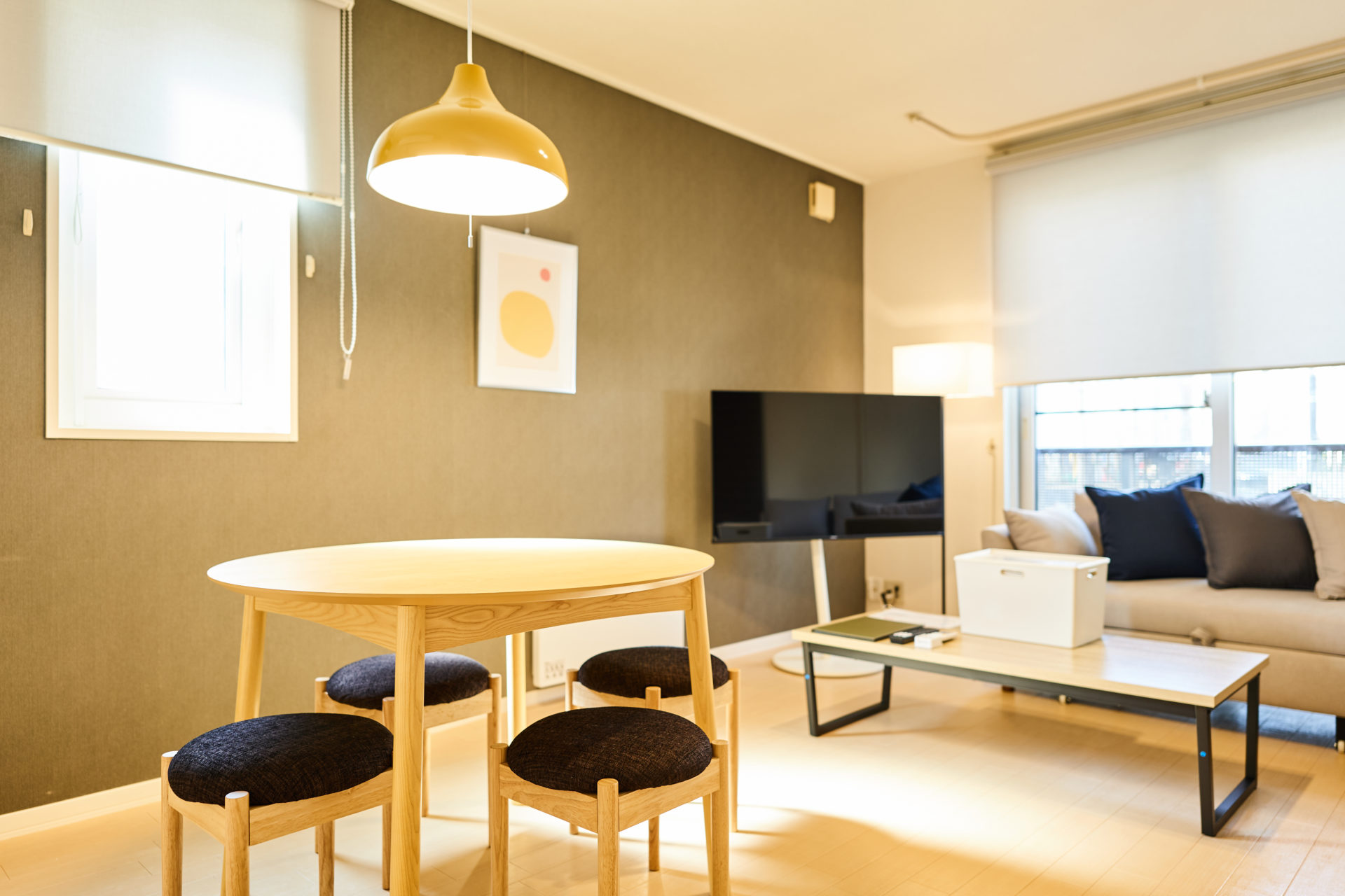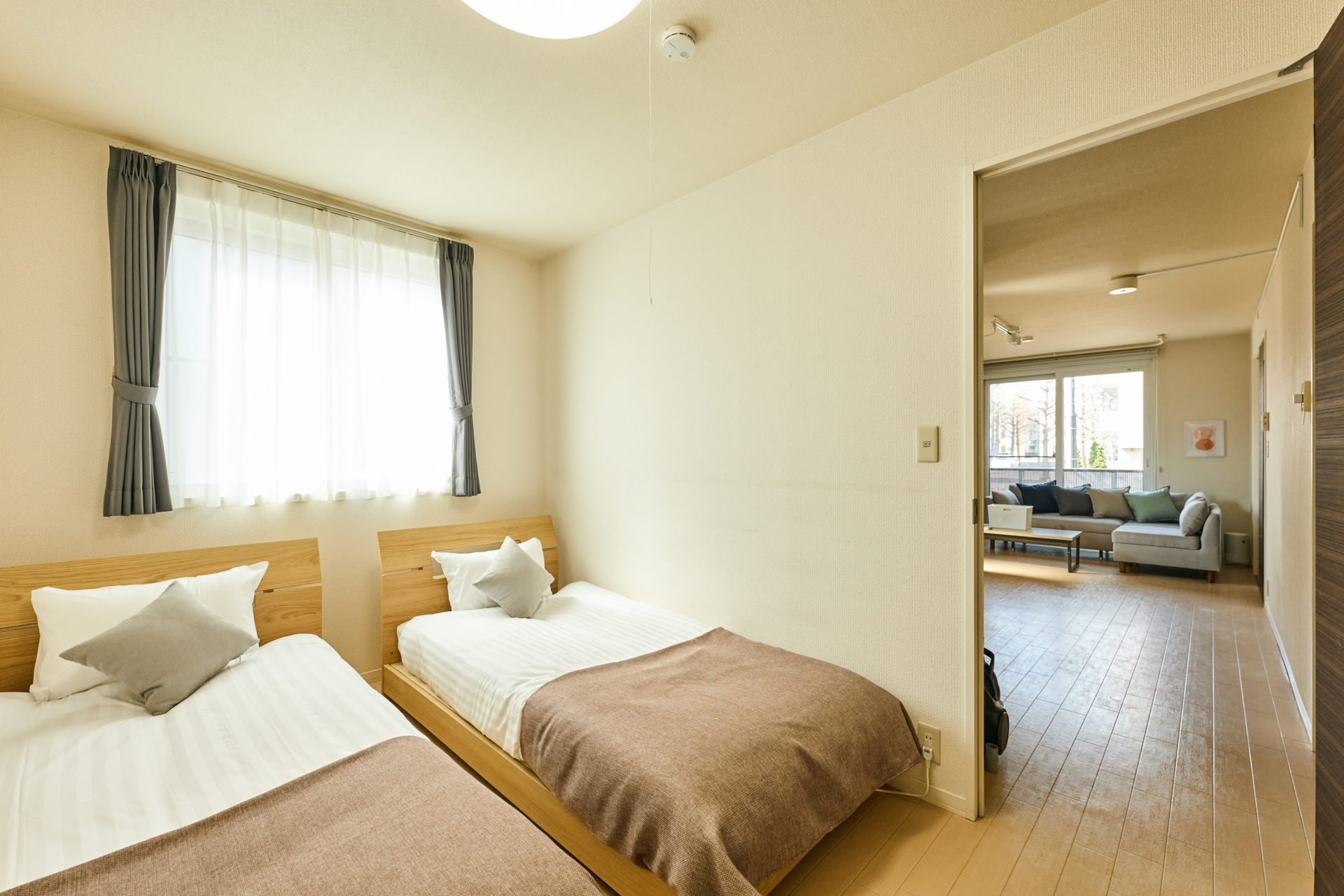 リビングスペースのソファはダブルサイズのソファベッドとして使用可能で、最大4名様まで宿泊いただけます。