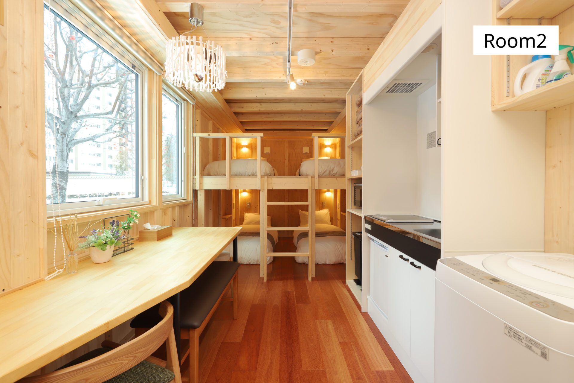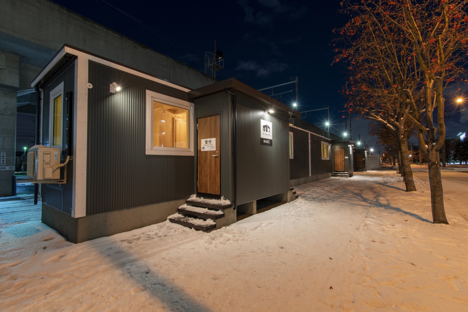 JR北海道社との共同事業・木造新築ムービングハウス型無人ホテル「JR Mobile Inn Sapporo Kotoni」
