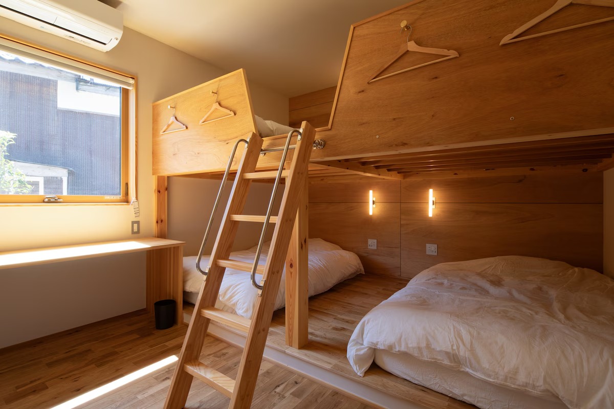 2つの寝室にはバンクベッド(二段ベッド)をご用意しており、小さなお子様はもちろん、大人でもしっかり眠れるセミダブルサイズで、みんなでワイワイ泊まりたいグループやご家族にぴったりのお部屋です。